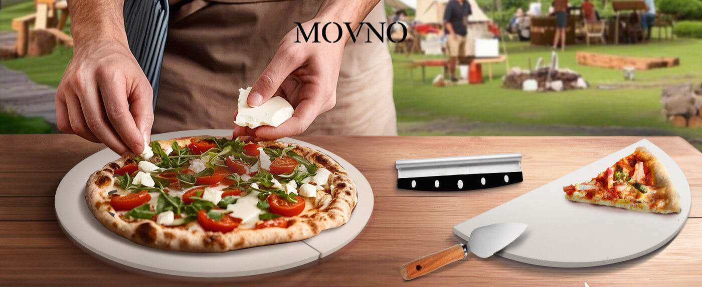 MOVNO 15 Inch Large Round Pizza Stone Set for Oven and Grill